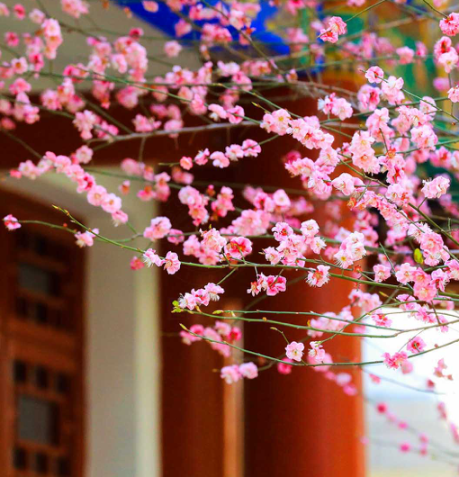 粉枝临镜理妆发 灰羽知暖逐春水